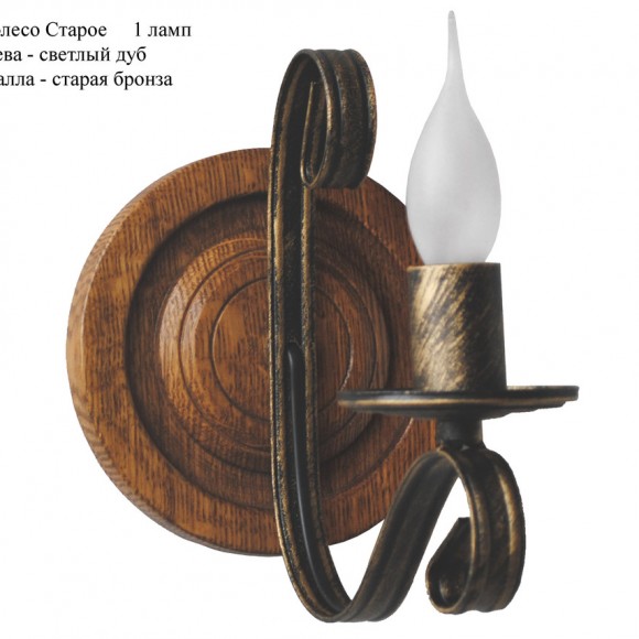 Бра из натурального дуба колесо состаренное на 1 лампу свечу