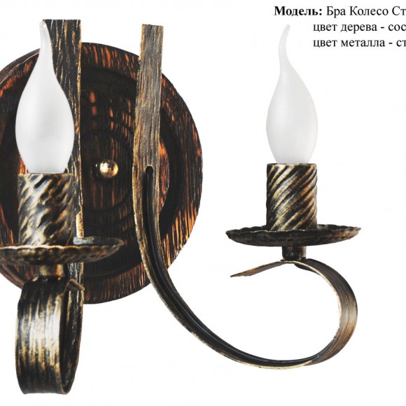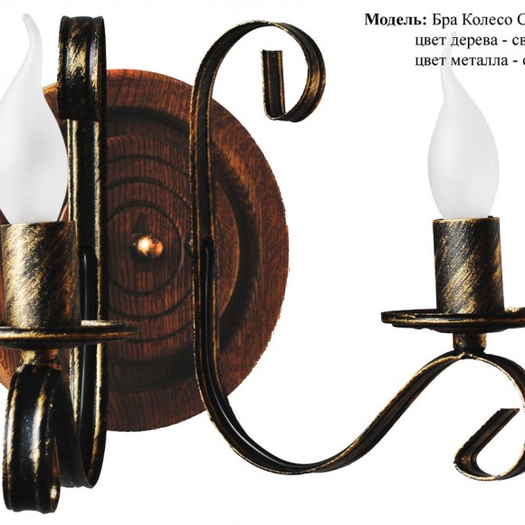 Бра из натурального дуба колесо состаренное на 2 лампы свечи