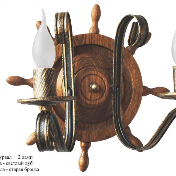 Бра из натурального дуба колесо штурвал под старину на 2 лампы свечи
