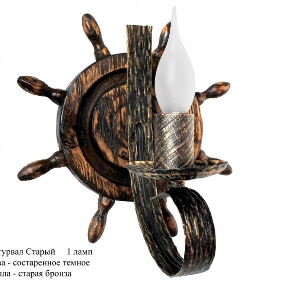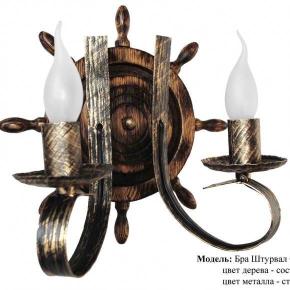 Бра из натурального дуба колесо штурвал под старинуна 1 лампу свечу