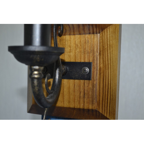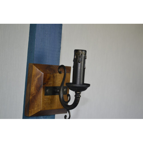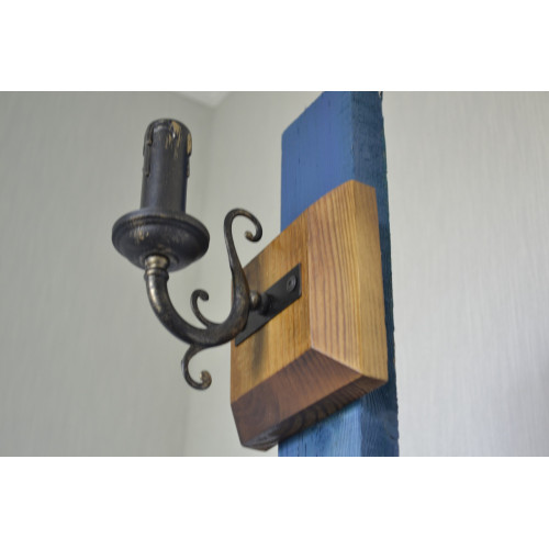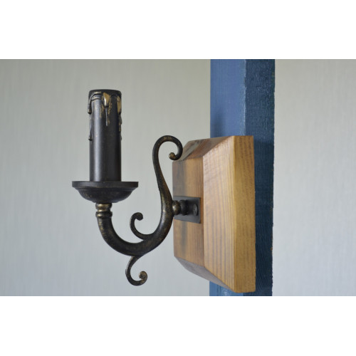 Деревянное бра свеча с литым фигурным завитком и высоким напатронником оплавленная свеча. Идеально в сочетании с светодиодной лампой свеча на ветру с прозрачной колбой. Возможны различные цвета.Размер корпуса 14*14 см. Есть такие же модели, но под плафон или абажур. В наличии или изготовление 2-5 дней.
