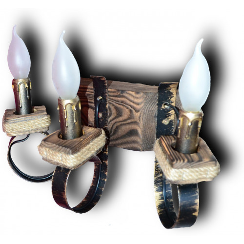 Бра изготовлено из натурального дерева с элементами металла и ткани. На 3 лампы свечи.