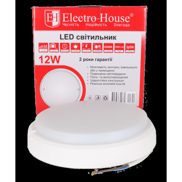 ElectroHouse LED светильник для ЖКХ 12W 6500K 1020Lm IP54