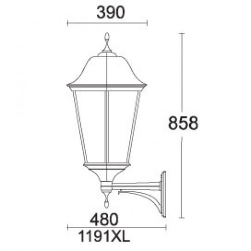 Светильник уличный настенный. Выплнен из металла и стекла. Форма бра.