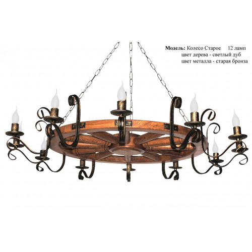 Люстра колесо точенное из дуба на 12 ламп свечей